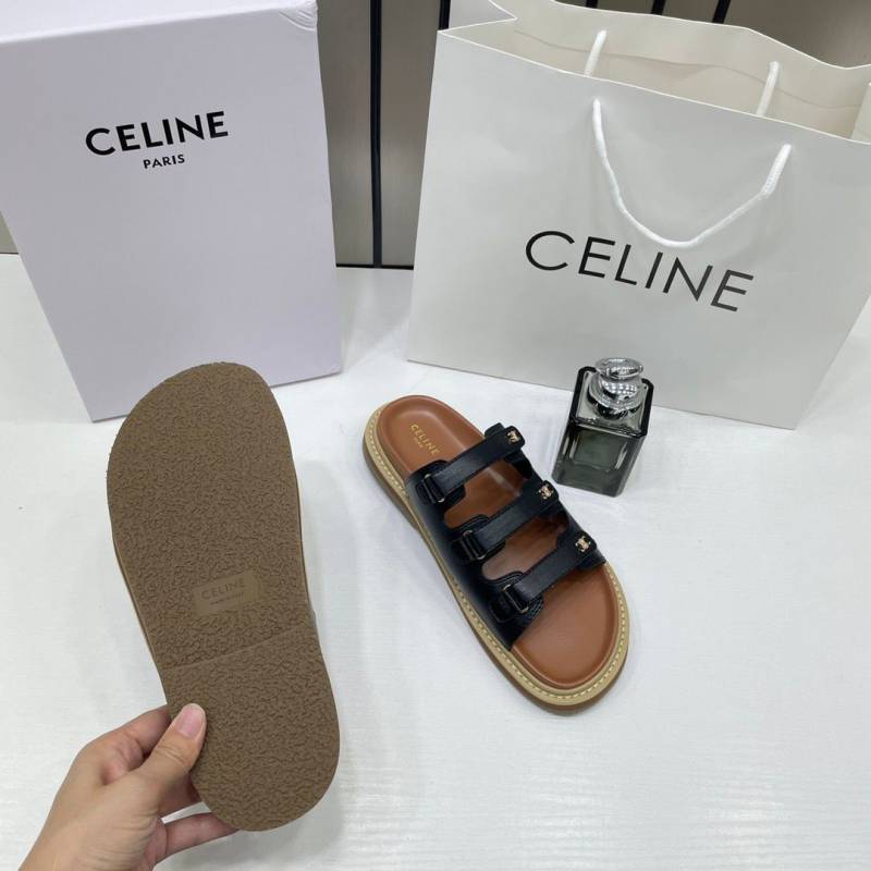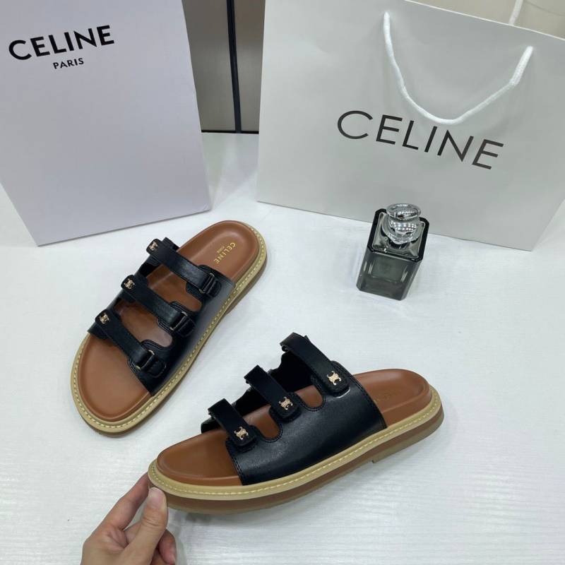 Celine Summer Black Leather Sandals For Her With OG Box & Carry Bag Black
