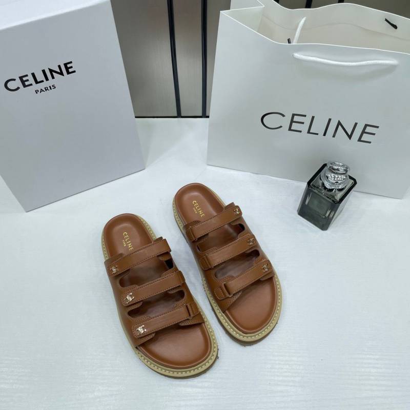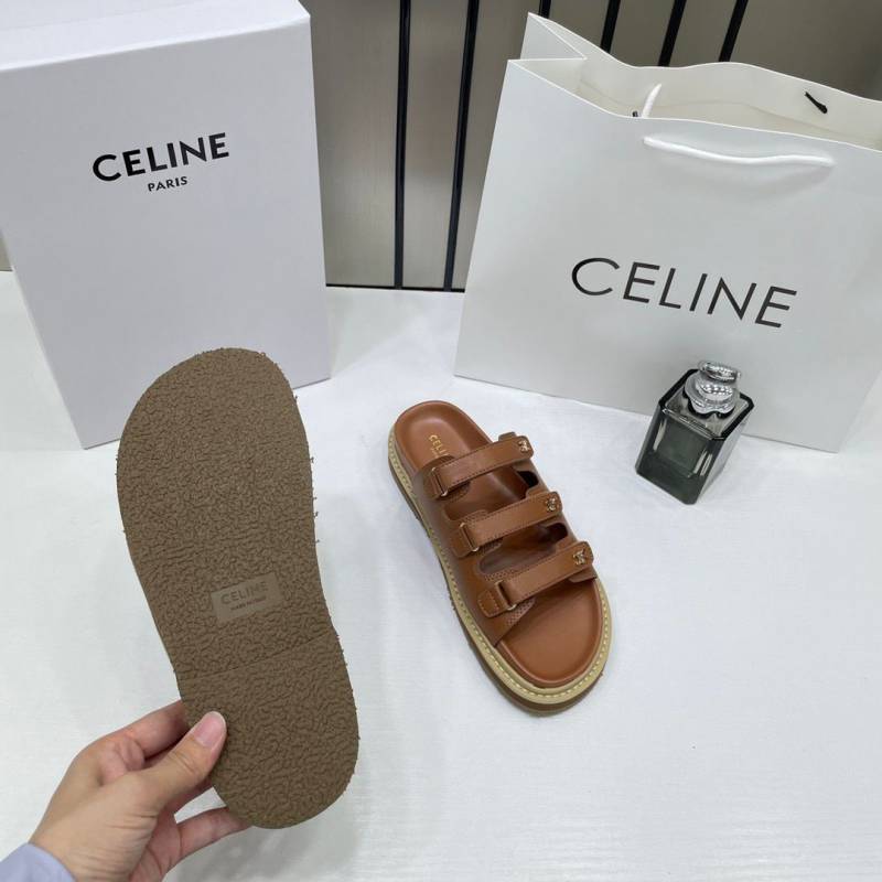 Celine Summer Brown Leather Sandals For Her With OG Box & Carry Bag Brown