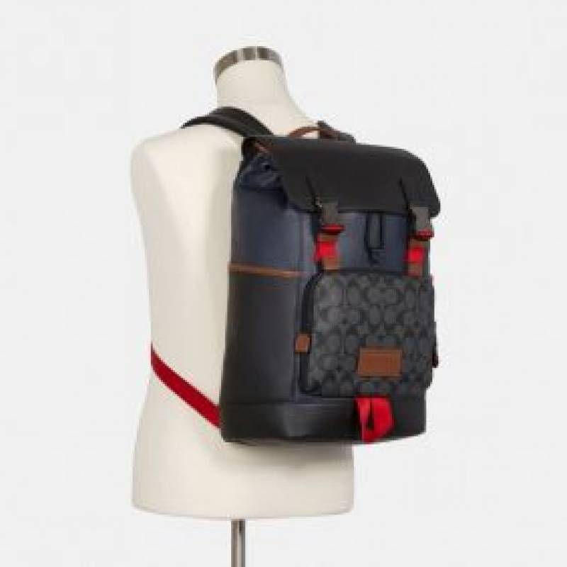 Coach_Track_Backpack_Colorblock_Navy_Signature_Canvas_&_High_Quality_Leather_With_Dust_Cover_&_Carry_Bag_N2712
